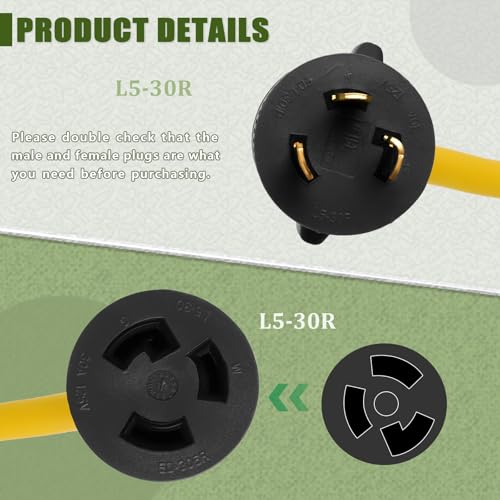 Specification: Wadoy 3 Prong Generator Cord 30 Amp, Yellow Generator Power Inlet Box and 30Ft Generator Power Extension Cord NEMA L5-30P to L5-30R 125V, 3750W Generator Power Inlet Organizer Combo Kit ETL Listed
