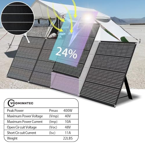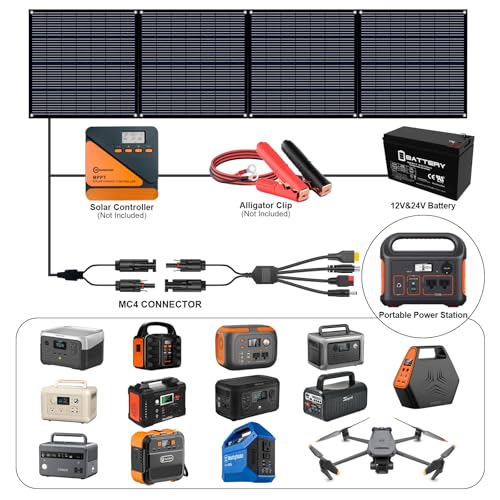[WIDE COMPATIBILITY] There is a built-in Mc4 cableand and a separate 4-in-1 cable, widely compatible with most solar generators available on the market, good for power stations of Jackery, Ecoflow, Bluetti, Anker, and others. With voominhtec MPPT controller and alligator clip(NOT INCLUDED), You’ll be able to also charge your 12V and 24V batteries by controller, such as USE, GEL ,LI,FLD,SLD.