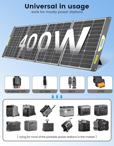 Outstanding Lightweight Design: At just 20 pounds, the 2pcs 400W portable solar panels is designed for easy transport and compact storage with its foldable design. It offers a convenient solar energy solution for any adventure without adding extra weight.