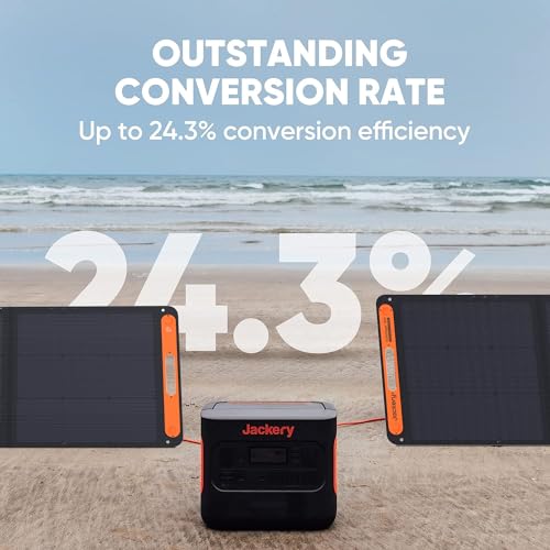 Peak Performance: Featuring advanced monocrystalline solar cells coupled with our cutting-edge IBC technology, Jackery Portable Solar Panels achieve an impressive conversion efficiency of up to 24.3% while delivering higher power output even in low-light conditions, outperforming conventional PERC panels and significantly boosting power generation.