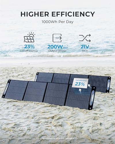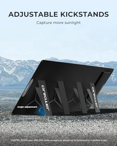 Specification: OUKITEL 200W Portable Solar Panel for Power Station, Foldable Solar Panel w/ 4 Kickstands, IP65 Waterproof Solar Panel w/MC-4 Output for Outdoor RV Camper