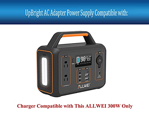 UpBright New Global AC / DC Adapter Compatible with ALLWEI 300W 280Wh Transportable Power Station Peak 600W Solar Generator 78000mAh CPAP Backup Lithium Battery Pack SGR-PPS300-2 SGRPPS300-2 SGR-PPS3002 SGRPPS3002 Switching Power Provide Cord Cable PS Battery Charger Mains PSU